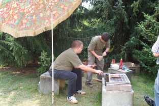Das Wetter hatte es zunächst gut mit uns gemeint. Es war zwar reichlich warm, es hat aber zunächst nicht geregnet.. Wir waren insgesamt 30 OM, YL, XYL. 14 Teilnehmer jagten die Füchse. Rückkehr und Zeitnahme der Jäger: Molly schaffte es, nicht nur für das leibliche Wohl der Teilnehmer zu sorgen, er war auch dieses Jahr wieder mal Sieger. Ich hatte die Ehre, als OVV den ihm von ihm im Jahr 2000 gestifteten Pokal zu übergeben. Herzlicher Glückwunsch Molly!