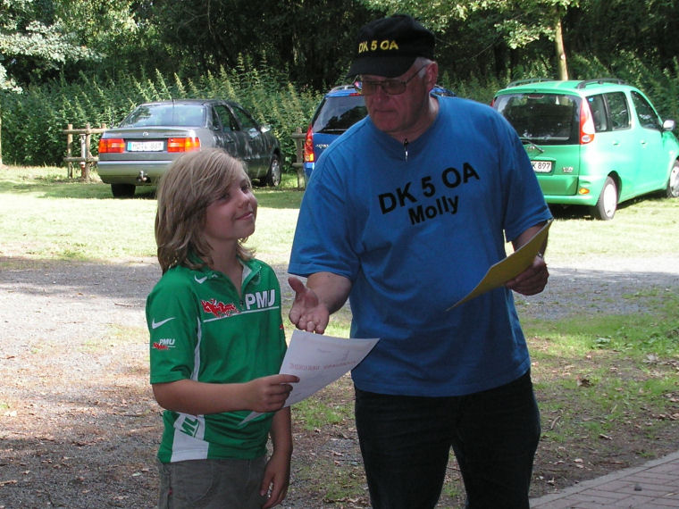 Die diesjährige Fuchsjagd haben wir gemeinsam mit H08 veranstaltet. Wie immer waren unsere Freunde aus W10 als Gäste dabei. Das Wetter hat es gut mit uns gemeint. Es war nicht zu warm, es hat auch nicht geregnet. Wir trafen uns um 13:00 Uhr auf einem Gelände des Schützenvereins Grassel, außerhalb von Grassel, auf dem auch ein überdachter Grillplatz vorhanden ist. Im Vordergrund stehen bei uns immer das Wiedersehen und die Unterhaltung, aber von den 32 Teilnehmern nahmen 17 auch aktiv an der Fuchsjagd teil, darunter 4 Jugendliche. Der "Parkour" erstreckte sich über etwa 6km und es galt, 8 Füchse zu fangen.