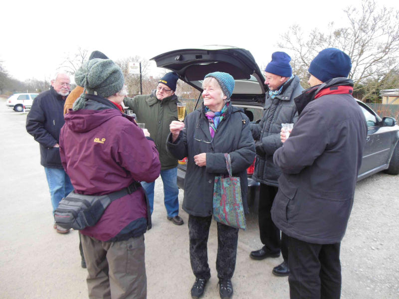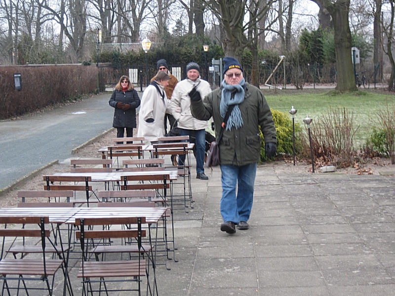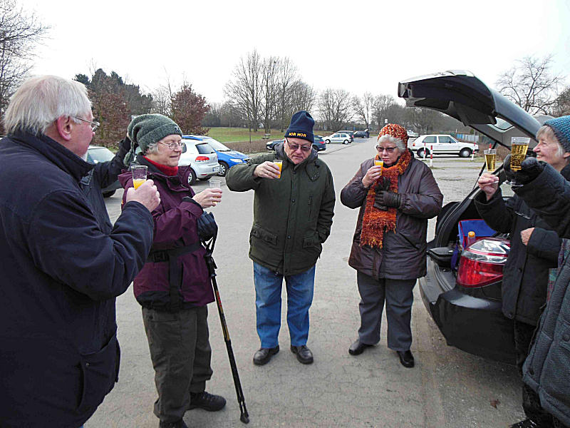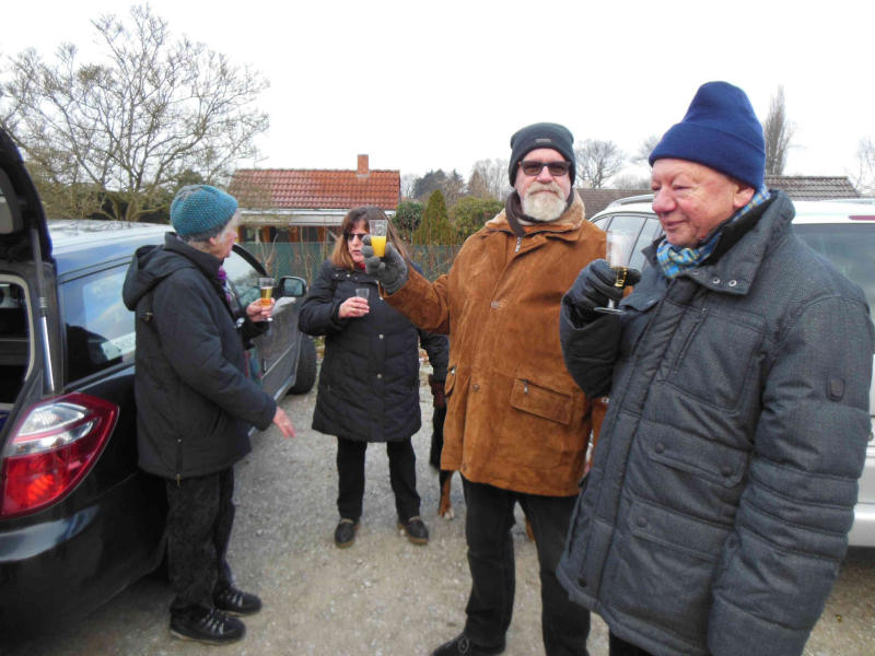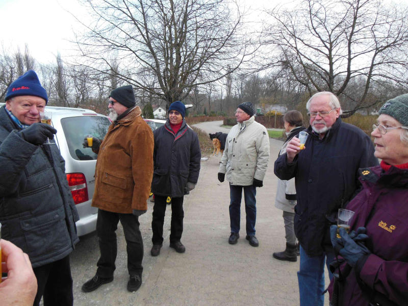 | Auf dem Riddaghäuser Weg befindet sich in unmittelbarer Nähe zur Gaststätte ein Parkplatz, auf dem wir uns sammelten und vor der Wanderung stärkten. |