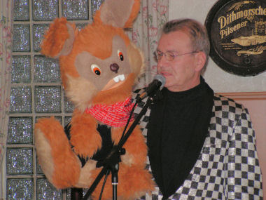 Die Überraschung des Tages war Günther Mathern, der bekannte Fernehbauchredner mit seinem TV-Hasen "Barney". Barney nahm die Gäste mächtig "auf die Schippe". Beide erhielten langanhaltenden Beifall für die vielen "Gags":